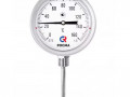 Коррозионностойкий биметаллический термометр БТ, серия 220 с радиальным присоединением и резьбой на штоке для измерения температуры агрессивных жидкостей и газов. Чувствительный элемент — биметаллическая пружина. Корпус и шток — нержавеющая сталь. Поставка «сухая» (готов к гидрозаполнению) или заполненный силиконом (для диапазонов до 250 °C). Опционально — нержавеющая гильза на до 25 МПа или до 60 МПа.