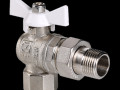 Угловой ремонтопригодный шаровой кран полного прохода 90° с "американкой", полусгоном и резьбой F/F (VT.228.NW). Специализированное решение для компактного изменения направления трубопровода. Корпус и детали – никелированная латунь (коррозионная стойкость, долговечность).