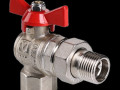 Угловой ремонтопригодный шаровой кран полного прохода 90° с "американкой", полусгоном и резьбой F/F (VT.228.N). Специальная конструкция для монтажа в углах, изменения направления трубопровода и экономии пространства. Корпус и детали – никелированная латунь (коррозионная стойкость, долговечность).