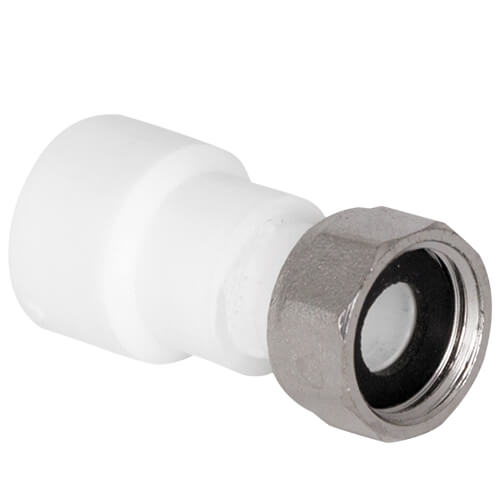 Монтаж и плюсы: пайка раструбная по таблицам прогрева PP-R; стык стягивается накидной гайкой, затяжку выполнять за металлические грани, резьбовые участки при необходимости уплотнять (ФУМ/нить/паста). Разборная схема ускоряет сервис и замену оборудования, компенсирует небольшую несоосность и обеспечивает аккуратный, герметичный узел. Для скрытой установки предусмотрите доступ к гайке; после сборки — обязательная опрессовка.