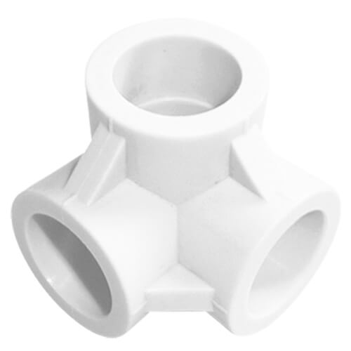 Монтаж и рекомендации: раструбная сварка по таблицам прогрева PP-R с контролем глубины посадки, соосности и ориентирования ответвления в нужной плоскости. На подходах к фитингу предусмотрите фиксированные/скользящие опоры по проекту; избегайте перекосов и боковых нагрузок. Двухплоскостная форма уменьшает число стыков в узких нишах и шкафах, упрощает разводку к коллекторам/приборам.